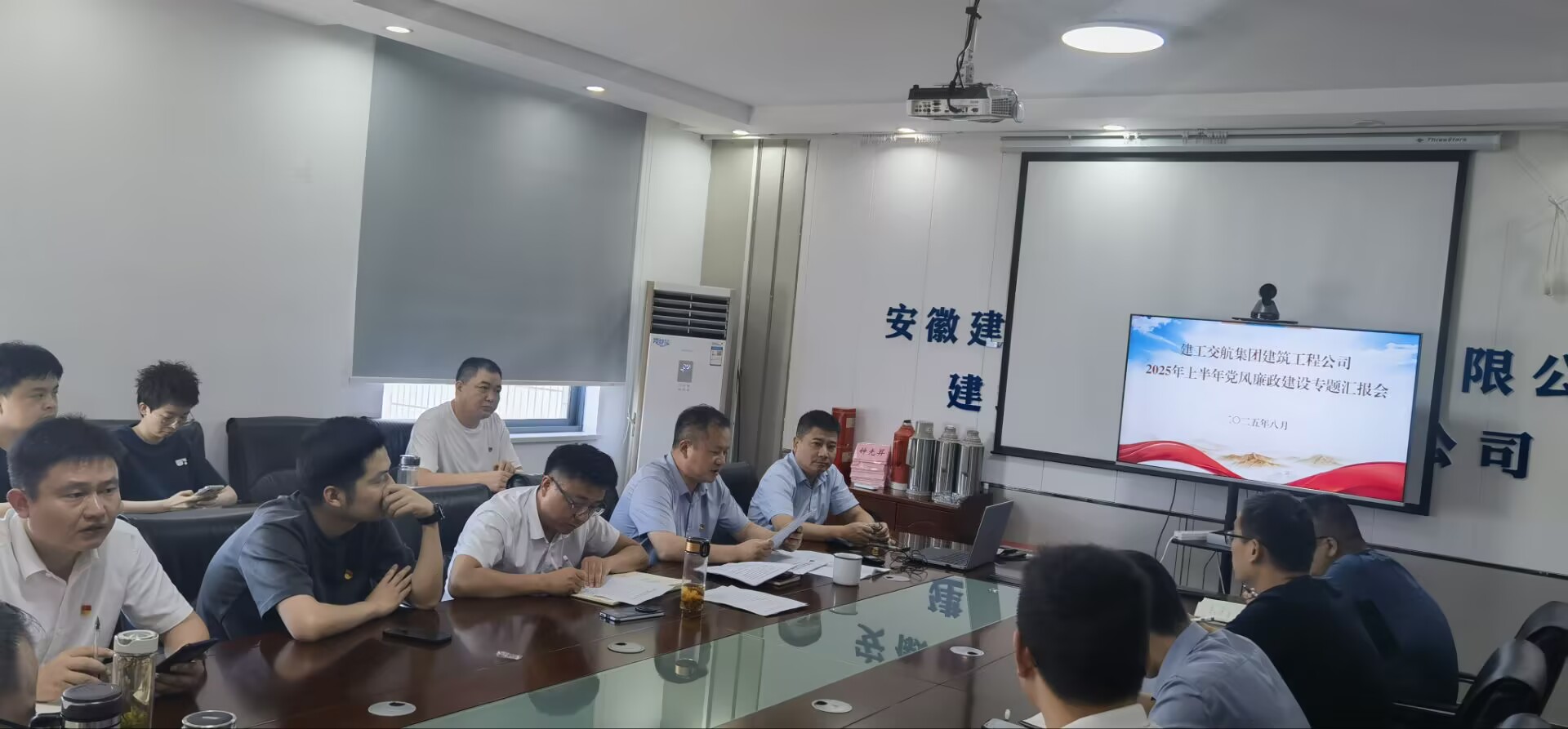 8 月 15 日下午,建筑工程公司以 “現(xiàn)場 + 視頻” 形式,在五樓會(huì)議室召開 2025 年上半年黨風(fēng)廉政建設(shè)專題匯報(bào)會(huì),公司領(lǐng)導(dǎo)班子成員、部門負(fù)責(zé)人、項(xiàng)目經(jīng)理和全體黨員參會(huì)。