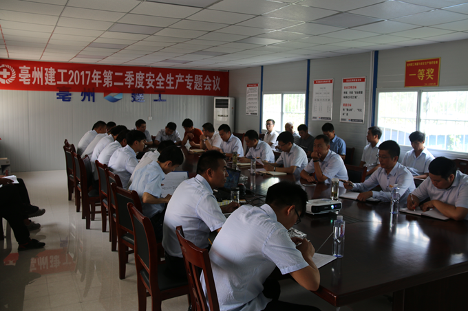 為認(rèn)真總結(jié)亳州建工二季度安全生產(chǎn)工作開展情況,全面部署公司高溫季節(jié)施工來臨之前各項(xiàng)安全工作,切實(shí)加強(qiáng)亳州建工安全生產(chǎn)管理工作,6月1日,由亳州建工安全管理部副經(jīng)理張磊主持召開了第二季度安全生產(chǎn)專題會(huì)議,副總經(jīng)理劉軍、生產(chǎn)總調(diào)度胡志友、工程部副經(jīng)理范鑫出席了會(huì)議。