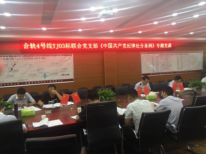 為筑牢思想防線,強化紀律約束,自覺做到守紀律、講規(guī)矩,知敬畏、存戒懼。9月3日下午,合肥市軌道交通4號線TJ03標項目黨支部組織全體黨員集中學習新修訂的《中國共產(chǎn)黨紀律處分條例》。黨支部書記翁厚洋主持并進行導讀,黨支部全體人員參加學習。